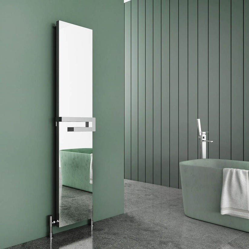 Part mirror, part heater, the high quality Elvino radiator is the bathroom or bedroom multitasker that streamlines your morning ritual. It is a full-length mirror that bounces light around the room, while the aluminium heated panel quietly pumps out up to 1,577 W (5,376 BTU) of warmth—plenty for cosy towels and a comfortably dry space. Aluminium’s fast heat-up time means you feel the benefit sooner and use less energy to get there, and the whole column projects only 142–162 mm from the wall, so even compact en-suites keep their generous feel. Choose Textured White, Textured Black or Satin Polished to match your taps, tiles, or other settings. Elvino arrives with wall brackets, bleed valve and blanking plug included, has been pressure-tested to 10 bar for peace of mind, and carries Carisa’s five-year guarantee on both body and finish. Slip it onto the wall and enjoy a brighter, warmer bathroom packaged in a single, elegantly modern statement.