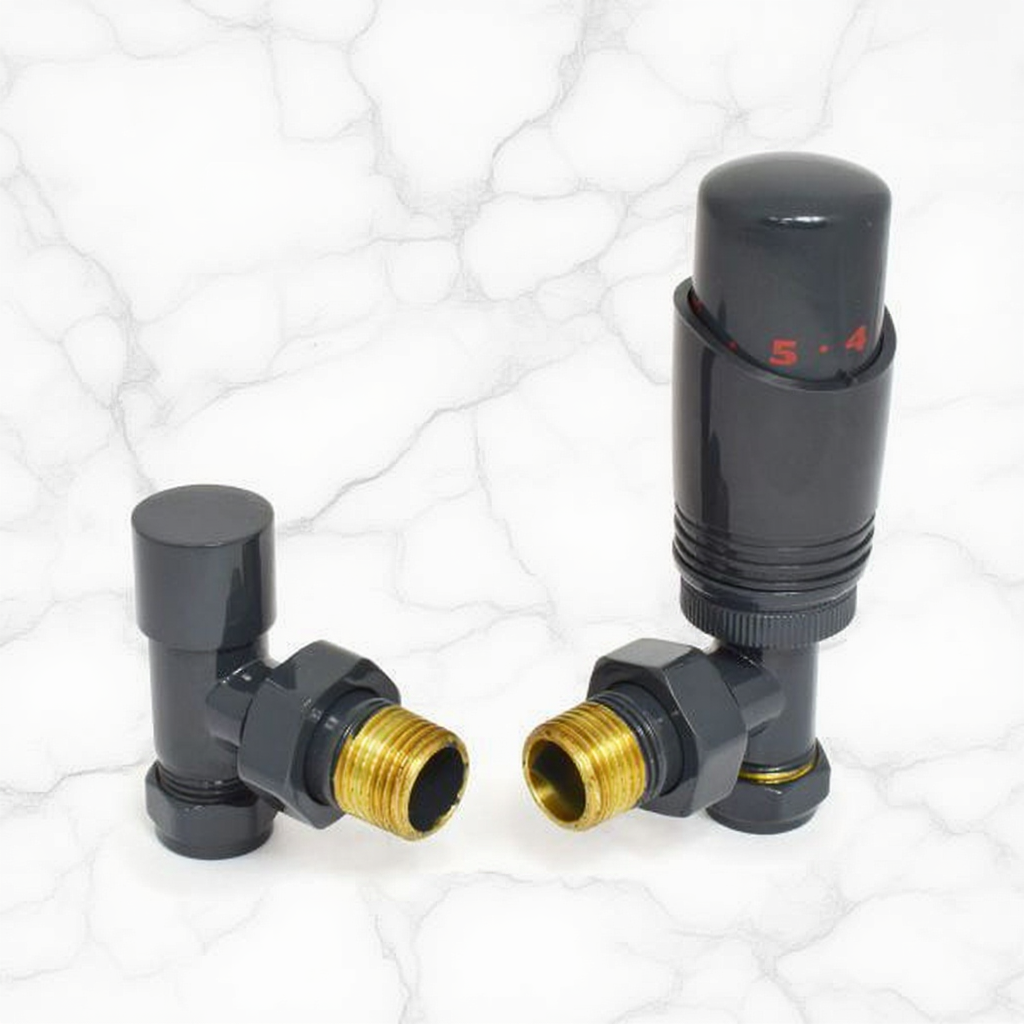 The Eucotherm Deluxe Angled TRV Valve Set in Anthracite couples a liquid-sensor thermostatic head with a matching lockshield on a compact 15 mm angled body, giving precise room-by-room temperature control and a clean finish for wall-fed pipework. A solid brass core guarantees durability, while the textured anthracite powder-coat blends seamlessly with darker designer radiators and resists everyday knocks and corrosion. The adjustable scale covers roughly 7 – 28°C, with an automatic 7°C frost-protection setting to prevent freezing during cold snaps. Independent BEAMA tests show modern TRVs can reduce radiator energy use by about 18 % across a typical UK heating season, trimming both bills and carbon footprint. Supplied as a complete pair—including valve, lockshield and ½" BSP tail—it fits any wet system radiator that accepts standard 15 mm compression fittings, not just the Eucotherm range, and installs in minutes with no adapters required. A two-year manufacturer’s guarantee rounds off this efficient, style-matched upgrade for contemporary heating projects.